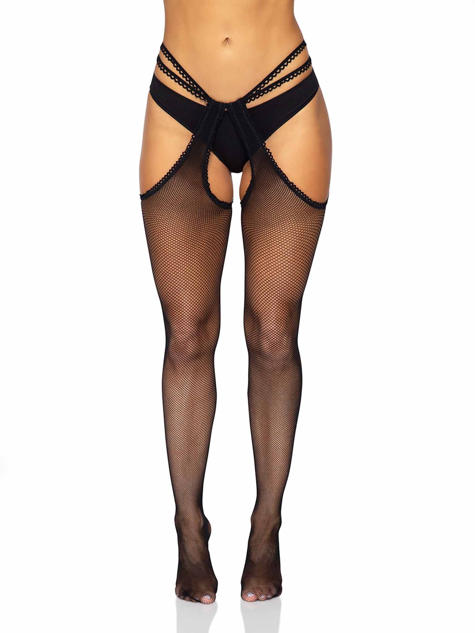 The Ariella Fishnet Strappy Suspender Hose is the perfect add-on to your favorite sexy lingerie set. Featuring a striking strappy pattern and adorable scalloped detailing, you're sure to feel bold, fun, and feminine whenever you wear this piece. This hosiery piece is perfect for a rave or a steamy night in.
