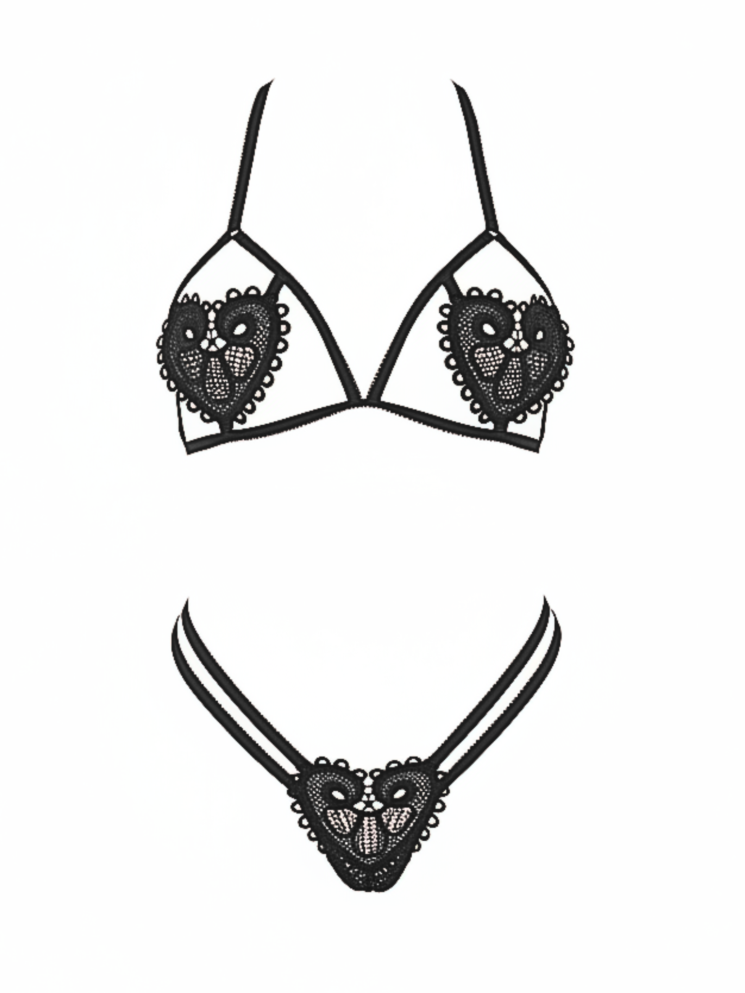 Wow them in this 2 piece ultra sexy bra and panty set by Leg Avenue. Featuring a heart applique open cup bralette and pearl strand thong panties, this spicy lingerie look is sure to get pulses racing.