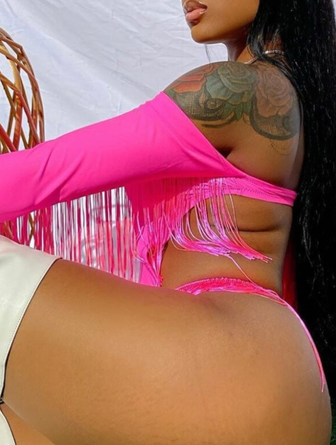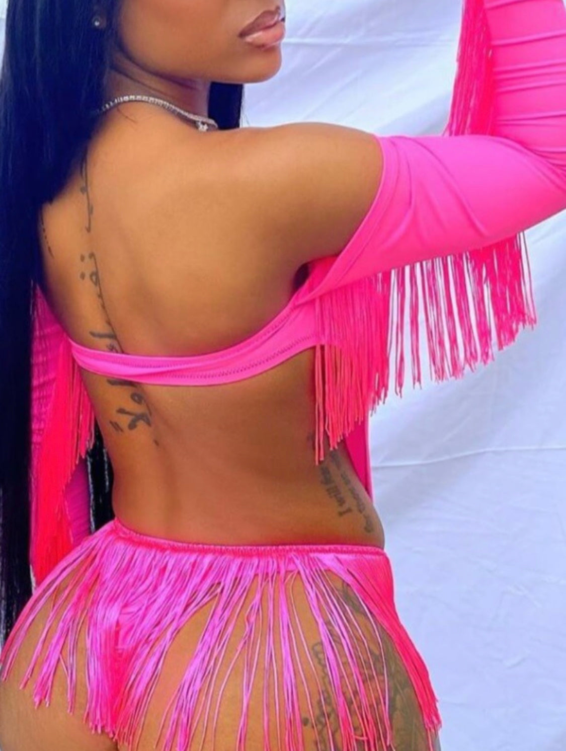 Long Sleeve Tassel Detail One Piece Swimsuit Costume