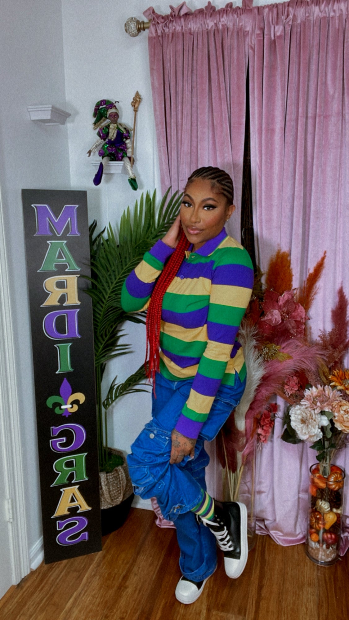 Womens Long Sleeve Striped Polo Shirt Mardi Gras